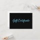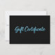 This gift certificate features the words "Gift Certificate" in faux blue glitter against a black background on the front.