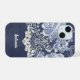 This lovely case has a simulated dark blue velvet and light blue and white faux lace look. This antique-looking design offsets the straight lines of the phone case, giving the case a vintage feminine look. Note that the image is just printed on, and there's no actual embroidery or textured fabric.