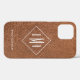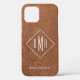 Faux Brown Leather White Monogram Personalised Case-Mate iPhone Case