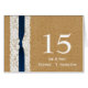 burlap lace, navy blue ribbon knot rustic wedding wedding table numbers. Matching products also available.