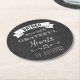 These round personalised THICK disposable or reusable paper coasters have a black and white FAUX chalkboard look background with a white ribbon banner, a pair of scrolls and a white heart on it, along with the verse: Gather here with grateful hearts, which would make it a wonderful item to have at your Thanksgiving feast, Christmas dinner, or any event where friends and family gather. Add your family name, business name, seasonal greeting, or other text. Makes a modern and trendy hostess or house-warming party gift for the young hipsters too! If you need assistance, email niteowlstudio@gmail.com.