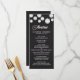 Rustic menu card featuring white lanterns on faux chalkboard background. This menu card is a part of a wedding suite "Hanging Paper Lanterns". Matching items and other colours are available.