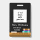 A vertical photo ID badge for teachers featuring a faux chalkboard , a white chalk and a stack of three books . Customise it for your school with a 2 by 2 inch photograph of the employee , the teacher's name , grade or subject taught and school name . On the back add your school name and address . There is also a space for the signature of the badge holder . Ideal for middle or high schools staff .