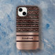 This coppery rose gold look design is a modern take on a retro look, with damask copper, raisin, and olive pattern, and a copper look band at the bottom with a monogram name. You can personalise your phone with a metallic antique unique look with a unisex appeal. Make sure to type your name in the Personalise section to overwrite the placeholder name. This theme works with a variety of iPhone and Samsung cases. This design has a faux embossed look but it's flat-printed - there's no foil or etching.
