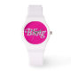 Funky pink face bling text design fashion watch. Bling design features faux diamonds for that bit of sparkle! Personalise by adding your name, logo, text or graphics. A perfect gift for a loved one. Order yours today! Visit my store to see our designs and products! https://www.zazzle.co.uk/store/vcreativedesign