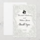 Express your gratitude with timeless elegance. This formal design features a sophisticated monochrome palette and classic typography perfect for traditional weddings.This design showcases a printed trompe l'oeil aesthetic, simulating the look of a plaster sculpture or bas-relief carving. A classic black silhouette of a bride and groom sharing a kiss is framed by intricate grey and white roses, lush foliage, and vine scrollwork that appears to be sculpted from stone. The typography features formal black calligraphy script against a clean white background, creating a high-contrast, luxurious feel.This is a flat printed image with a Faux Embossed effect, not actual raised material.