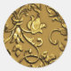 Faux Embossed Metallic Damask, Gold Classic Round Sticker