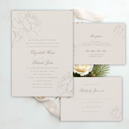 Faux Embossed Roses Ecru Formal Classic Wedding Invitation