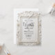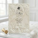 Set the tone for a timeless fairytale union with this ornate, vintage-inspired design. Perfect for couples seeking traditional luxury and classic romance.This design features a sophisticated digital rendering of a 3D ornate baroque frame, creating a sculpted look with symmetrical scrollwork and leaf flourishes. At the center, two paired swans form a delicate heart crest surrounded by decorative roses, all rendered in soft ivory and creamy off-white tones with subtle light gray shading to mimic depth. The text is presented in an elegant calligraphy script header paired with traditional charcoal serif typography for a formal finish.This is a flat printed image with a printed faux relief effect, not actual raised material or embossing.