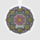 Pretty purple, gold, and green mandala with pink rosette centre surrounded with white background, including name monogram template for you to personalise.