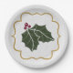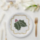 Faux Felt and Gold Glitter Holly Leaves Berries Paper Plate