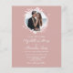 A simple chic floral faux foil monogram pink wedding invitation. Easy to personalise with your details. Modern boho wedding invitation editable, wreath photo wedding invitation, customisable, calligraphy handwritten font, simple, elegant.