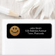 These return address labels were ordered to complement the USPS "Celebrate" Forever stamps. I love the whimsy smiley face. The black background was what I was seeking to go with the stamps. The white lettering on the black is totally readable. The block letters of this font don't seem to "match" the curves of the smiley face, but a rounded font may not be as easy to read.
