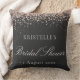 Add a touch of glamour to your celebration with this stunning faux glitter pink and black bridal shower throw pillow. Designed with sparkling glitter-style accents and elegant script typography, this personalized cushion makes a beautiful keepsake for the bride-to-be.