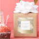 Elegant and glamourous faux gold abstract swashes on dark silver/taupe background, white blank label with taupe border and editable text fields.