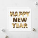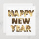 Happy New Year Typography Faux Gold Foil Text on White Background, Modern Lettering Chic New Year's Card