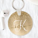 Easily personalise this trendy chic keychain design featuring pretty gold sparkling glitter on a gold brushed metallic background.