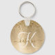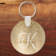 Faux Gold Brushed Metal Glitter Print Monogram Key Ring
