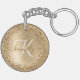 Easily personalise this trendy chic keychain design featuring pretty gold sparkling glitter on a gold brushed metallic background.