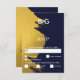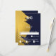 Faux Gold Brushstrokes & Navy Blue with Monogram RSVP Card
