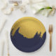 Faux Gold Brushstrokes with Navy Blue Background Paper Plate