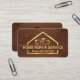 An exquisite timber grain cover is accentuated by a gold handyman tools design in a gold building frame. The gold tools can represent some of the work or service that you might offer. Just underneath the tools is the business name and contact details. Lettering here are in faux gold.