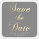 Grey background with faux gold calligraphy custom script "save the date" and your own monograms in elegant font. This sticker pairs beautifully with our cards and envelopes.