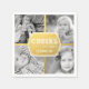 Holiday Cheer - 4 Photos Holiday Paper Napkins - White and Gold Foil (printed photo effect). Design by Elke Clarke© for Monogram Gallery. Holiday table decor - it has the words "Cheers, to you and yours" in a combination of a modern, bold font and a script font on a gold background tag design with 4 of your favourite family photos you add to replace the sample photos shown here. For other colours please contact store owner.