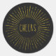 These elegant & classy stickers would a great addition to an envelope, invite or mailout for any formal gathering. They feature a black background. On top of the background is a circle burst with a faux gold effect. Please note: The gold is a graphic effect only. It is not actually metallic. The word "Cheers" sits in the burst. Great stickers for Christmas, New Years, Weddings, corporate & business events.
