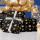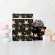 Faux Gold Christmas Stars Pattern Add Text Black Wrapping Paper