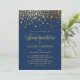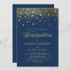 Faux Gold Confetti Dots Navy Blue Graduation Invitation