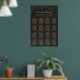 Wedding seating chart for sixteen tables with a printed black chalkboard background and gold-coloured text and confetti, and elegant fonts. Note: the gold colours are printed effects, not real gold foil.