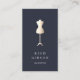 Elegant vertical business cards for seamstresses, fashion designers, tailors and more feature a dress form in faux gold foil, on a rich navy blue background with two lines of custom text in white. Customise the back with your full contact details, displayed beneath a smaller matching dress form illustration.
