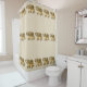 This shower curtain is perfect for the safari themed bathroom. Three rows of elegant pachyderms dressed up in gold showcase the beautiful design on a neutral beige background.