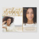 Affordable custom printed graduation announcement magnets personalised with your photos and text. This elegant modern design features a modern script font with faux gold foil effect. Add 2 senior photos along with your grad year, name and school details or any other custom text. Use the design tools to choose any background colour, add more photos or edit the text fonts and colours. This chic design is perfect for middle school, high school or college grads!