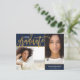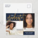 Affordable custom printed graduation announcement postcards personalised with your photos and text. This elegant modern design features a modern script font with faux gold foil effect. Add 2 senior photos along with your grad year, name and school details or any other custom text. Use the design tools to choose any background colour, add more photos or edit the text fonts and colours. This chic design is perfect for middle school, high school or college grads!