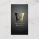 Very unique elegant design. Business card with butterfly image. Half of the butterfly is faux gold foil, and half of it is black.The background color is dark gray effected.