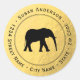 This circular address label is decorated with elegant black elephant image on a faux gold foil background. The circular design makes it perfect as an envelope seal.