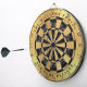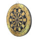 A classic dartboard design with alternating black marble and faux gold triangles. The outer circle is faux gold foil and has black arched text in it: the family name in the upper part and a custom message in the lower part.