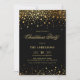 Faux Gold Foil Confetti Christmas Party | Black Invitation