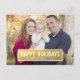 Modern holiday photo postcard with white bold text on a gold foil label (printed photo effect). ELKE CLARKE© Versatile template design. Add your picture, your name and year. In a retro text font. Send to family and friends for the holidays. Other colours available at www.zazzle.com/epclarke. "Happy Holidays"