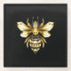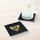 Faux Gold Foil Logo Bee Polygonal on Black Glass Coaster