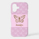Beautiful butterfly form in faux (not real) golden yellow foil look-like texture on a light purple / lavender colour background. The background has a light butterfly pattern on it as well. There is also a personalizable text area for a name. NOTICE: THE DESIGN IS A DIGITAL IMAGE AND IT WILL BE PRINTED ON THE PRODUCT.