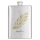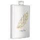Sleek flask features a gleaming feather in faux gold foil effect, and personalisation of your choice. PLEASE NOTE: gold foil is a digital image, not actual foil. Great bridesmaid gift!