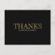 Personalised flat thank you card featuring 'thanks' in faux gold foil with name in white below.