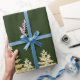 Elegant wrapping gift with dark green background and gold foil pine tree silhouette. Perfect for wrapping gifts for him.