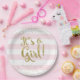 Faux Gold Foil Pink Stripes Baby Shower Its a Girl Paper Plate