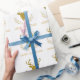 This wrapping paper features a beautiful image of fake golden foil textured deer head shape with some tree branches. There is also a customisable text area that now reads "Merry Christmas". Notice: The foil texture is not real. It is a printed image mimicking the look of golden foil.