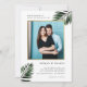 Trendy palm leaves with faux gold frame photo wedding invitation.