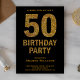 Amaze your guests with this glamourous 50th birthday party invitation featuring a bold golden glitter text against a black background. Simply add your event details on this easy-to-use template to make it a one-of-a-kind invitation. Flip the card over to reveal a faux gold glitter texture on the back of the card.